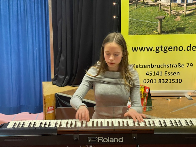Für eine besondere Stimmung bei der Veranstaltung sorgten auch Daniela Razlog (Klasse 7b) mit ihrer musikalischen Darbietung am Klavier und ein Lehrer, der als Lehrer-Lese-Star von seiner besonderen Beziehung zum Roman „Der Herr der Ringe“ erzählte und daraus vorlas.